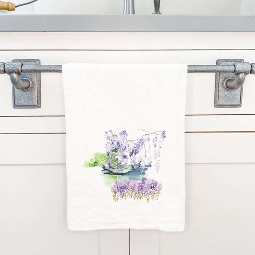 All photos and designs are (C) 2023, American Life Brands. Elevate your kitchen experience with our Watercolor Pond Scene cotton tea towel today!