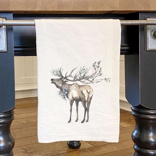 Introducing the Winter Elk Cotton Tea Towel, a must-have addition to your kitchen essentials. This beautifully designed tea towel features a stunning Winter Elk motif, making it not only functional but also a decorative piece for your home. Crafted from 100% absorbent cotton, this towel is perfect for drying dishes, wiping hands, or even as a stylish table setting accessory.