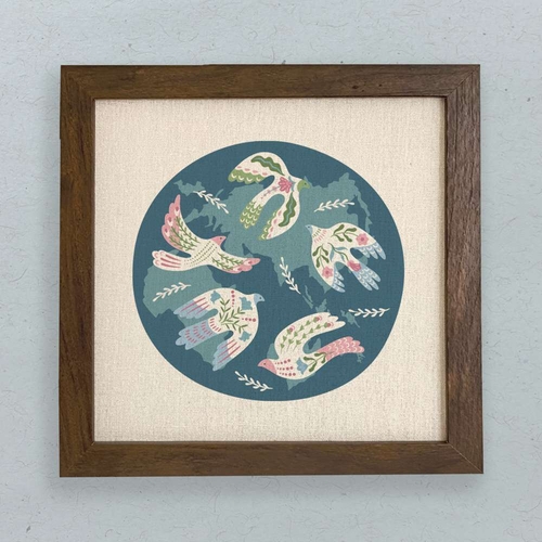 The World Doves Framed Sign measures 9" x 9" x 1.5", making it the perfect size to fit in various spaces around your home. Whether you want to display it on a shelf, a mantle, or hang it on the wall, this sign is designed to enhance your living space without overwhelming it.