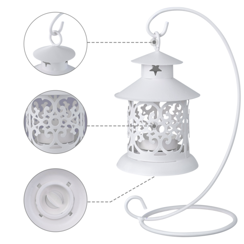 - Vintage Appearance - White hanging candle holder with metal stand in retro Morocco style has an exquisite flower hollow appearance, simple and sleek design adding an elegant touch to your living space