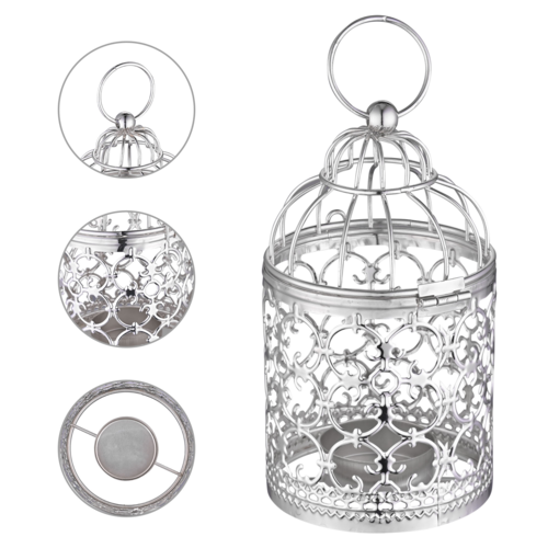- Vintage Appearance - Silver candle holder in the shape of bird cage has an exquisite flower hollow appearance, simple and sleek design adding an elegant touch to your living space