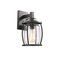 This 1-light outdoor wall lantern features a textured black finish that will complement many transitional decors. The clean lines of the steel frame adds interest while the clear seedy glass allows the light to bounce giving a whole new look to your outdoor decor.