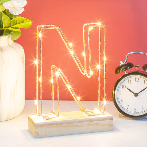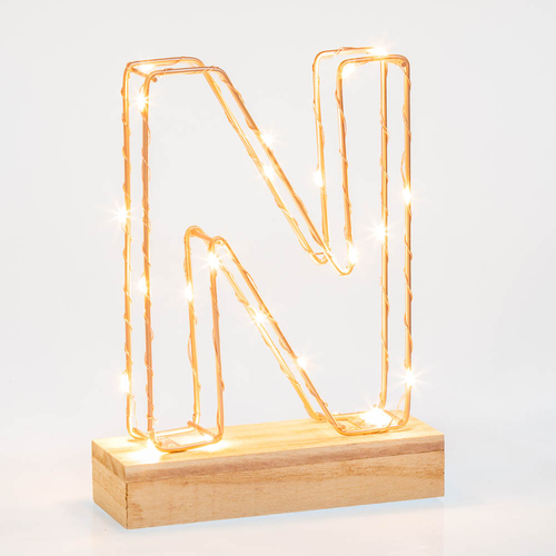 Light Up Letter N Wire Frame Copper Rose Gold Alphabet Light