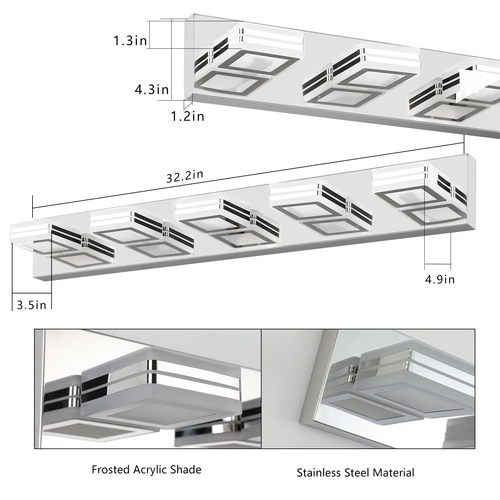 High Quality Wall Lamp - Made of high-quality stainless steel technology, durable, corrosion-resistant, and moisture-proof. Acrylic lampshade with good light transmittance. Energy Saving & No Flicker - Our wall sconces use built-in 30W LED chips, equivalent of at least 90W halogen bulb, creating stable and efficient light, and protecting your eyes. Compared to conventional light bulbs, this sconces wall lighting saves up to 80% electricity. Wide Application - Overall size: 32.3" x 4.7" x 4.3" (L x W x H). The wall light fixtures can be widely used in bathroom, bedroom, living room, powder room and so on, beautiful home decor to show your taste. Easy Installation - It's very easy to install this wall sconces, just need to connect to the reserved wire on the wall.