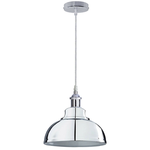 The Vintage Modern Metal Ceiling Pendant Light features a contemporary chrome finish that adds a touch of sophistication to your interior. Its minimalist design allows it to blend seamlessly with various decor styles, from industrial to modern chic. The white finish on the inside of the hood enhances the illumination, creating a warm and inviting atmosphere.