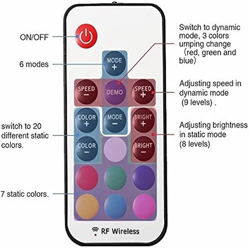 2.With remote control: You can easily control the LED light bar through the 17 buttons of the remote control. The control distance can reach 10M. You can switch multiple modes and colors remotely