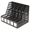 Keep magazines, catalogs, file folders and other literature neat and accessible. Separate compartments help organize materials. Large labeling area on front to clearly identify contents; white labels included. Durable plastic. Magazine Files Type: Desktop; Material(s): Plastic; Width: 13 1/4 in; Depth: 10 in.