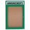 Enclosed Aluminum Frame Bulletin Board Satin Anodized Finish are made of custom extruded parts engineered to provide accurate, durable and handsome Cabinet. All corners are neatly mitered and assembled with heavy duty reinforcements and fasteners. Lockable doors are mounted with a full length piano hinge and feature acrylic safety glass windows. The background is an attractive Natural Pebble Grain Cork tackable panel. Concealed mounting brackets are provided. Headers are standard white opaque acrylic letters. Unit is Illuminated with UL listed fluorescent fixtures feature a light diffuser. A 3 wire electrical lead is provided.
