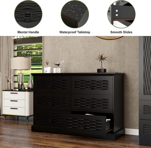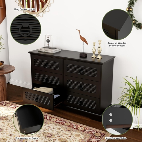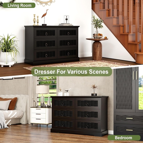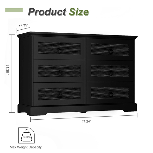 • Ample Storage with 6 Drawers: The spacious black drawers dresser offers abundant storage with 6 generously sized drawers, suitable for organizing clothes, toys, books, and more. Say goodbye to clutter and hello to a tidy and organized living space.