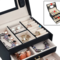 Multi-functional jewelry case with storage drawers, classifies necklaces, bracelets, watches, earrings, ear studs, hairpins, brooches and other jewelries in perfect order.