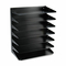 Five letter-size trays with label holders on both sides for easy identification of contents (labels not included). All-steel construction. Scratch-resistant black finish. For desktop or wall mount (hardware not included).