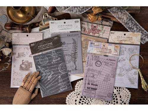 Material: Paper Shape: as pic shown Model Number: sl2162 Age: >6 years old Size: 14*10cm material: 3 kinds of paper quantity: 15pcs/pack Adhesive Or Not: yes pattern type: letter, newspaper, travel, coffee