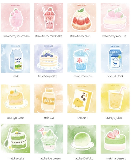 pattern type: strawberry ice cream, yogurt drink, orange juice, matcha