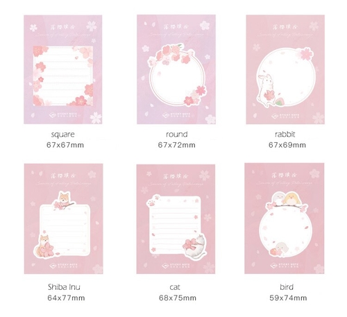 Style: Memo Pads Feature: Self-Adhesive Function: Decoration Adhesive Or Not: Yes Customized: Yes Model Number: sl1845 Magnetism: No size:as pic shown pattern type: cherry, Shiba Inu, rabbit, cat, bird Adhesive Or Not: yes