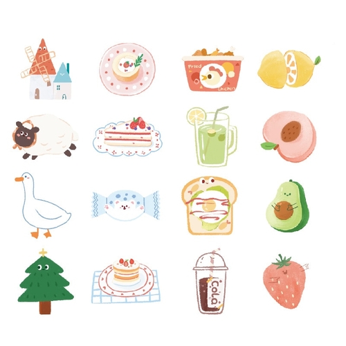Age: >6 years old Material: Paper Shape: as pic shown Size: 85*120mm Model Number: sl2034 quantity: 30pcs/pack Adhesive Or Not: yes pattern type: strawberry, lemon, cream, cola, tree