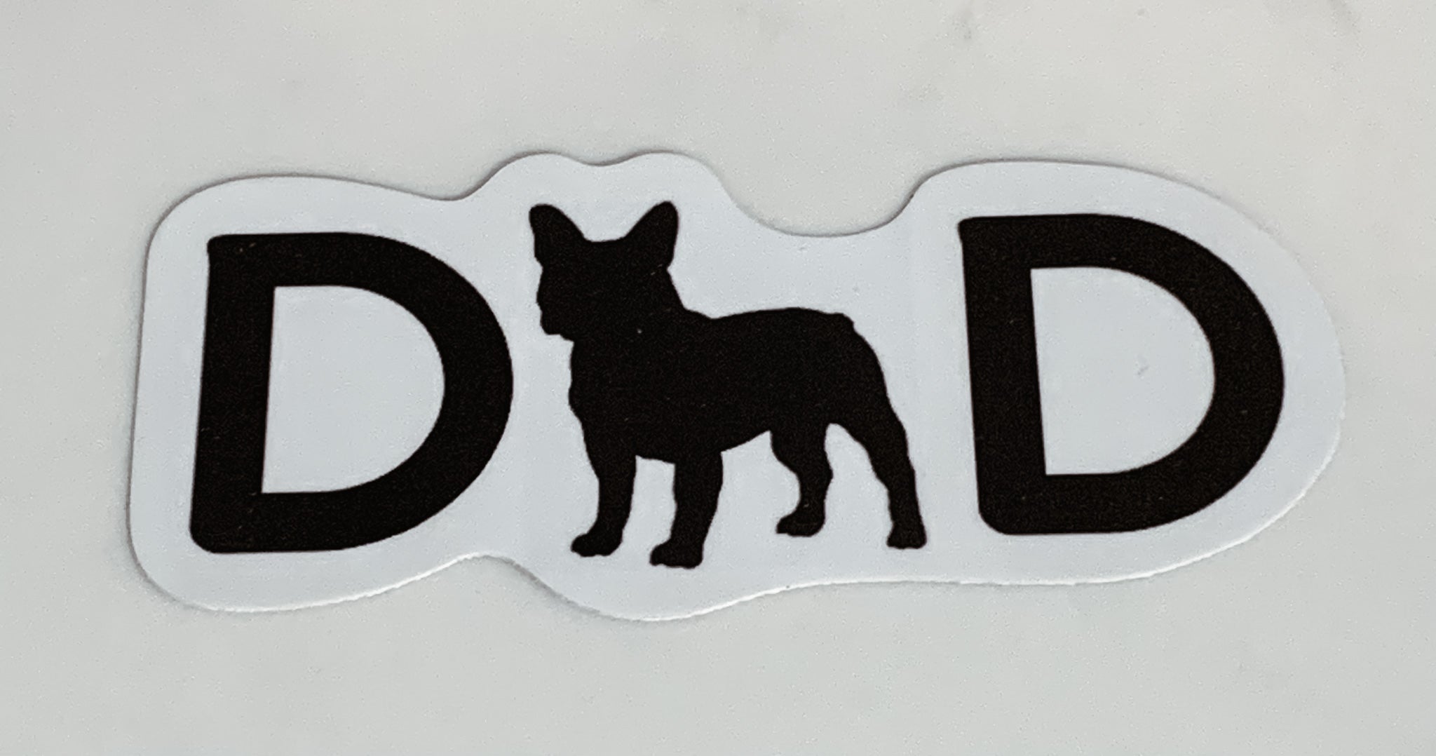 Introducing our adorable 3.75x1.75 in DAD (Dog) Vinyl Sticker featuring a charming French Bulldog design. This sticker is perfect for dog lovers who want to showcase their affection for their furry friends. The glossy finish enhances the vibrant colors of the sticker, making it a delightful addition to any surface.