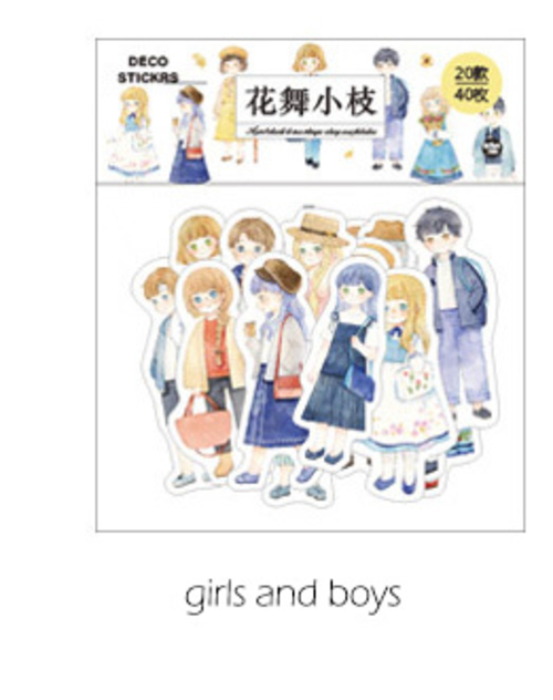 Size: 90*105mm Model Number: sl1415 Age: >6 years old Shape: girl Material: Paper material: washi paper quantity: 40pcs/pack Adhesive Or Not: yes pattern type: girl, leaf