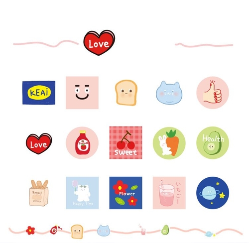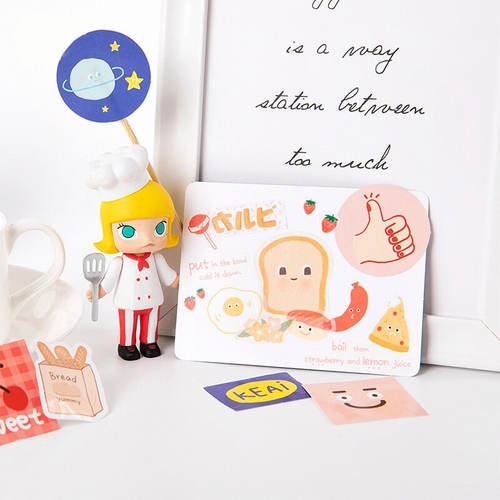 Material: Paper Shape: as pic shown Model Number: sl2170 Age: >6 years old Size: 44*44*11mm Adhesive Or Not: yes Quantity: 45 PCS/PACK pattern type: bread, love, carrot