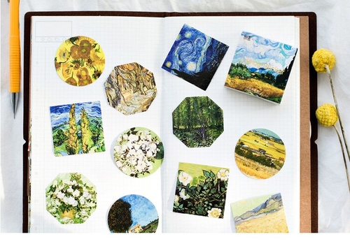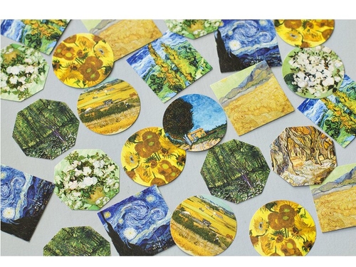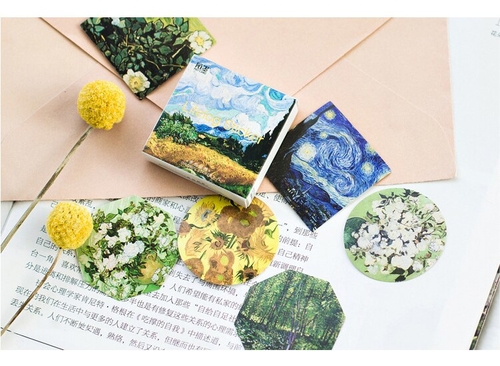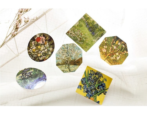 Age: >6 years old Material: Paper Shape: as pic shown Size: 44*44*11mm Model Number: sl2047 Adhesive Or Not: yes Quantity: 45PCS/PACK pattern type: painting, Van Gogh, plant
