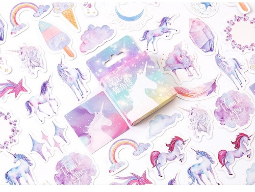 Age: >6 years old Material: Paper Shape: unicorn Size: 44*44*11mm Model Number: sl2017 Adhesive Or Not: yes Quantity: 46PCS/PACK