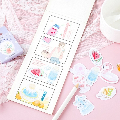 Shape: as pic shown Model Number: sl2134 Material: Paper Age: >6 years old Size: 44*44*11mm Adhesive Or Not: yes Quantity: 46PCS/PACK pattern type: fruit, honey, cake, flower