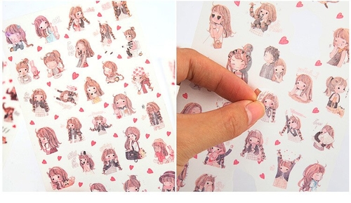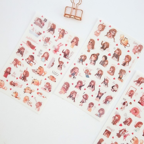 6PCS/ PACK Cute Girl Sticker Marker Planner