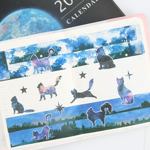 Age: >6 years old Material: Paper Shape: starry sky cat Size: 16*8cm Model Number: sl1345 size: 16*8cm quantity: 6pcs/pack Adhesive Or Not: yes