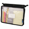 Easy access and flexibility for storing office supplies and essentials. Pleated design for bulky items. Contents stay secure with zipper closure. Letter-size hanging bar allows use in file cabinets or totes. Remove the bar to carry separately or store securely with grommets in a standard three-ring binder. Mesh for strength and easy identification of contents. Color(s): Black; Clear; Height: 11 in; Width: 8 1/2 in; Quantity: 1 each.