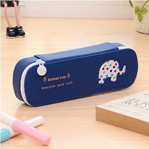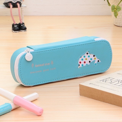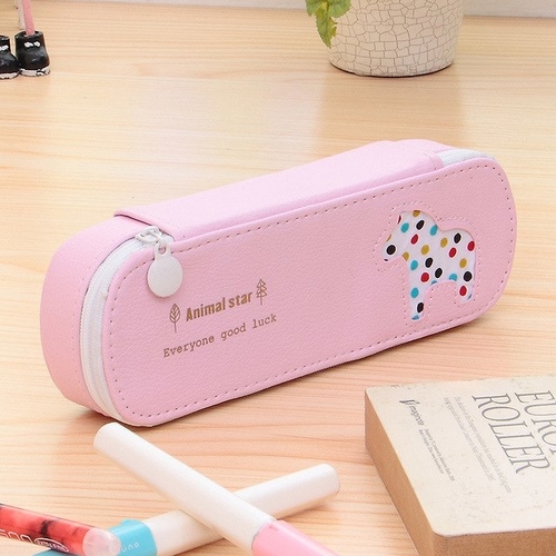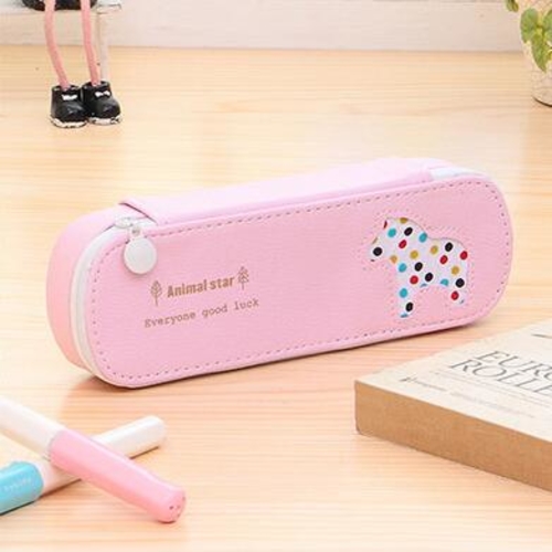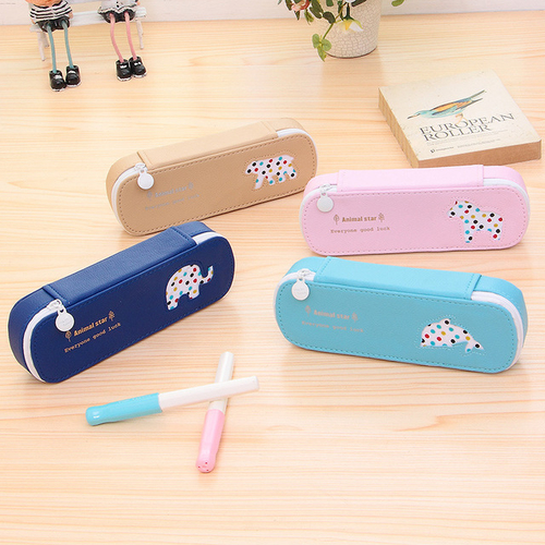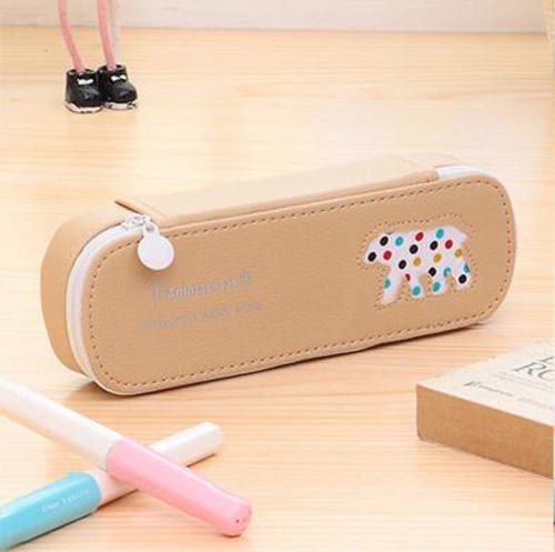 Cute animals Candy Color PU Leather Pencil Case