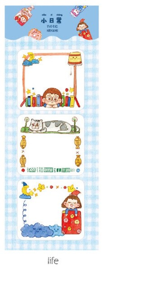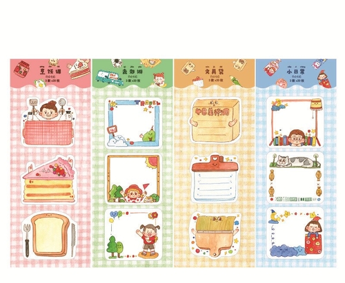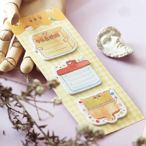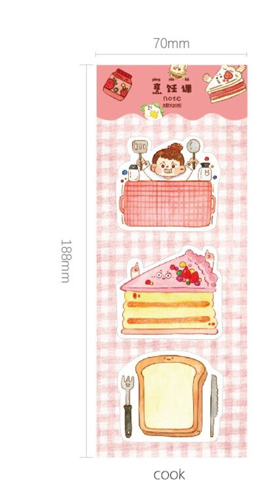 Style: Memo Pads Feature: Self-Adhesive Function: Decoration Adhesive Or Not: Yes Customized: Yes Model Number: sl1898 Magnetism: No Size: 70*188mm Sticker Size: 51*46mm sheets: 3*20 Sheets pattern type: cook, stationery, tour, life