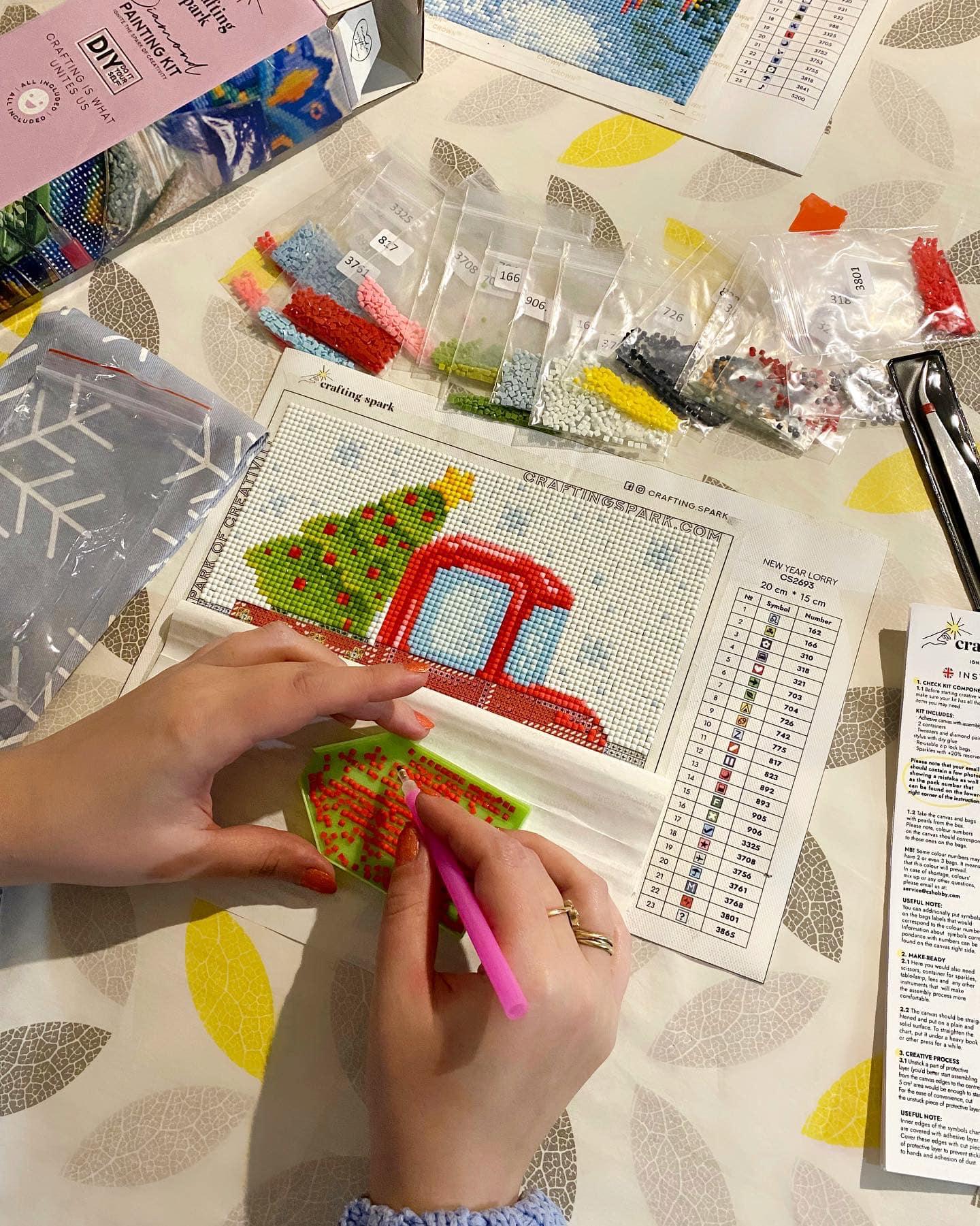 Getting started with your diamond painting kit is simple. First, choose a comfortable workspace with good lighting. Unroll the canvas and secure it flat. Then, use the tweezers and stylus to pick up the diamonds and place them on the corresponding symbols on the canvas. As you work, you will see your masterpiece come to life, one sparkling diamond at a time.