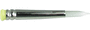 A 22 gauge stainless steel flow-through needle with a luer lock base, inserted into a nickel plated ferrule with soft White Taklon (tapered nylon) fill.
