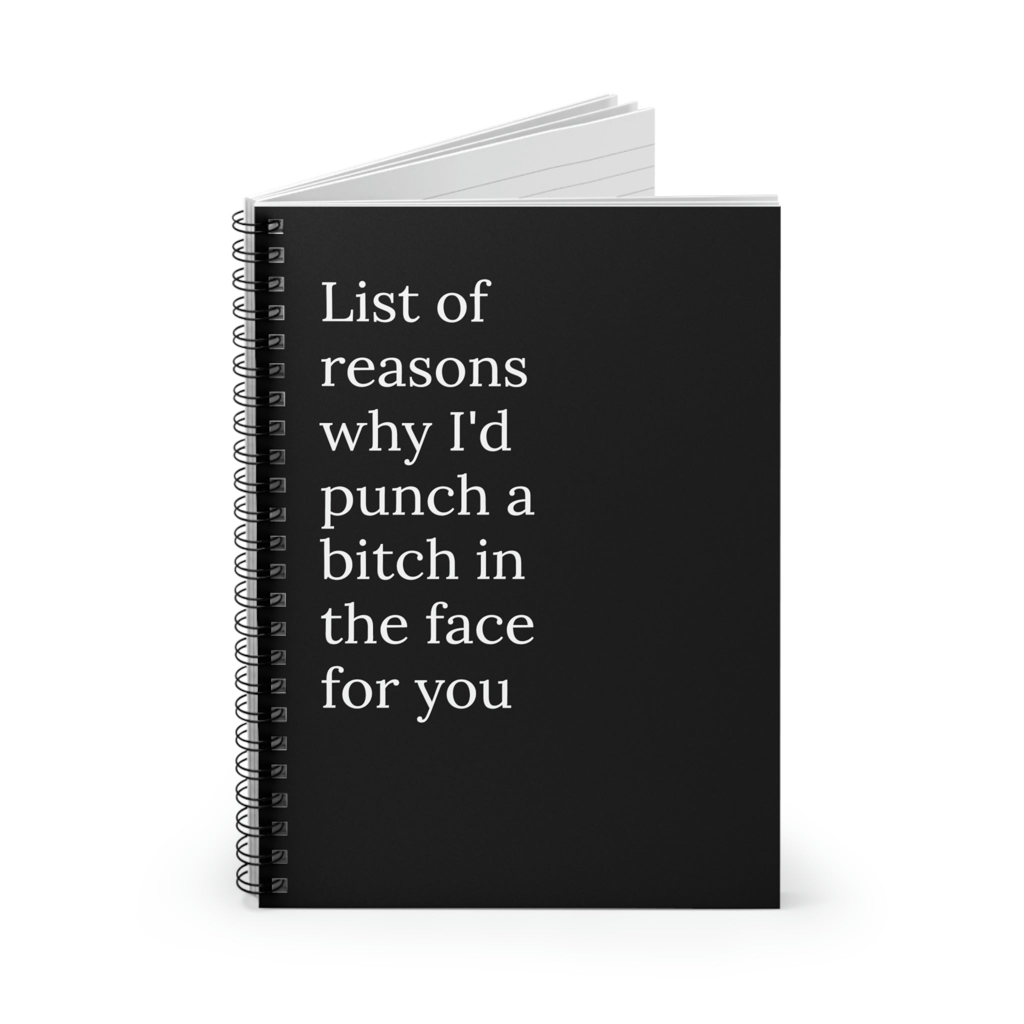 In summary, the 'List of Reasons Of Why I'd Punch A Bitch In The Face For You' funny notebook is a must-have for anyone who loves to write and appreciates humor. With its durable design, ample writing space, and versatility, it's perfect for everyday use or as a thoughtful gift. Don't miss out on adding this unique notebook to your collection!