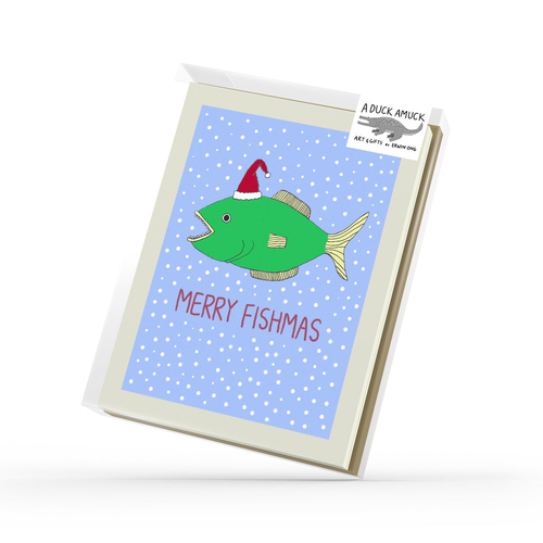 Choosing the Merry Fishmas card means opting for a unique and artistic way to convey your holiday wishes. With its charming design and quality materials, this card stands out from the typical holiday cards available in stores. It's a thoughtful choice for those who appreciate art and want to share something special with their loved ones.