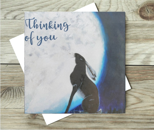 All my cards start life a a painting on canvas. The originals are scanned or professionally photographed. My son then edits the image and chooses the funky fonts where appropriate. The edited image is sent to a local printing company who print onto high quality card.