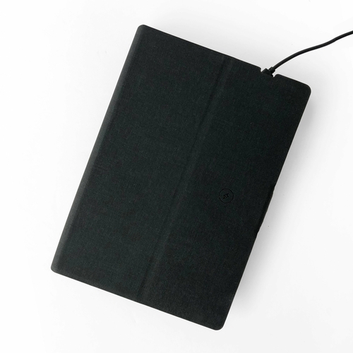 This notebook is designed with functionality in mind. It features a removable A5 lined notebook that fits perfectly within the cover, making it easy to jot down notes, ideas, or sketches. The front cover is equipped with a wireless charging pad, which means you can simply place your compatible smartphone on top to start charging. This feature is especially useful for busy professionals who need to stay connected without the hassle of carrying extra chargers.