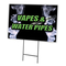 These Yard Signs provide the cheapest form of advertising known to mankind. Perfect for along roadsides, in front of retail stores or can be mounted anywhere without the stand. You can't go wrong with a Sign Mission yard sign!