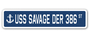 SignMission SSN-Savage Der 386 4 x 18 in. A-16 Street Sign - USS Savag