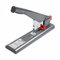Get the leverage you need for large stapling jobs with the long arm of this heavy-duty desktop stapler. AntiJam technology eliminates frustrating staple jams. Drives 3/8", 1/2", 5/8", 13/16" and 15/16" heavy-duty staples. All metal with an antimicrobial finish. Antimicrobial compound safely reduce the growth of bacteria, viruses and mold. Adjustable paper stop with standard and metric rulers. Throat depth adjustable up to 2 3/4". Rear loading. Stapler Type: Heavy-Duty Desktop; Staple Capacity: N/A; Size of Staple Used: 3/8 in; 1/2 in; 5/8 in; 13/16 in; 15/16 in; Type of Staple Used: Heavy-Duty.