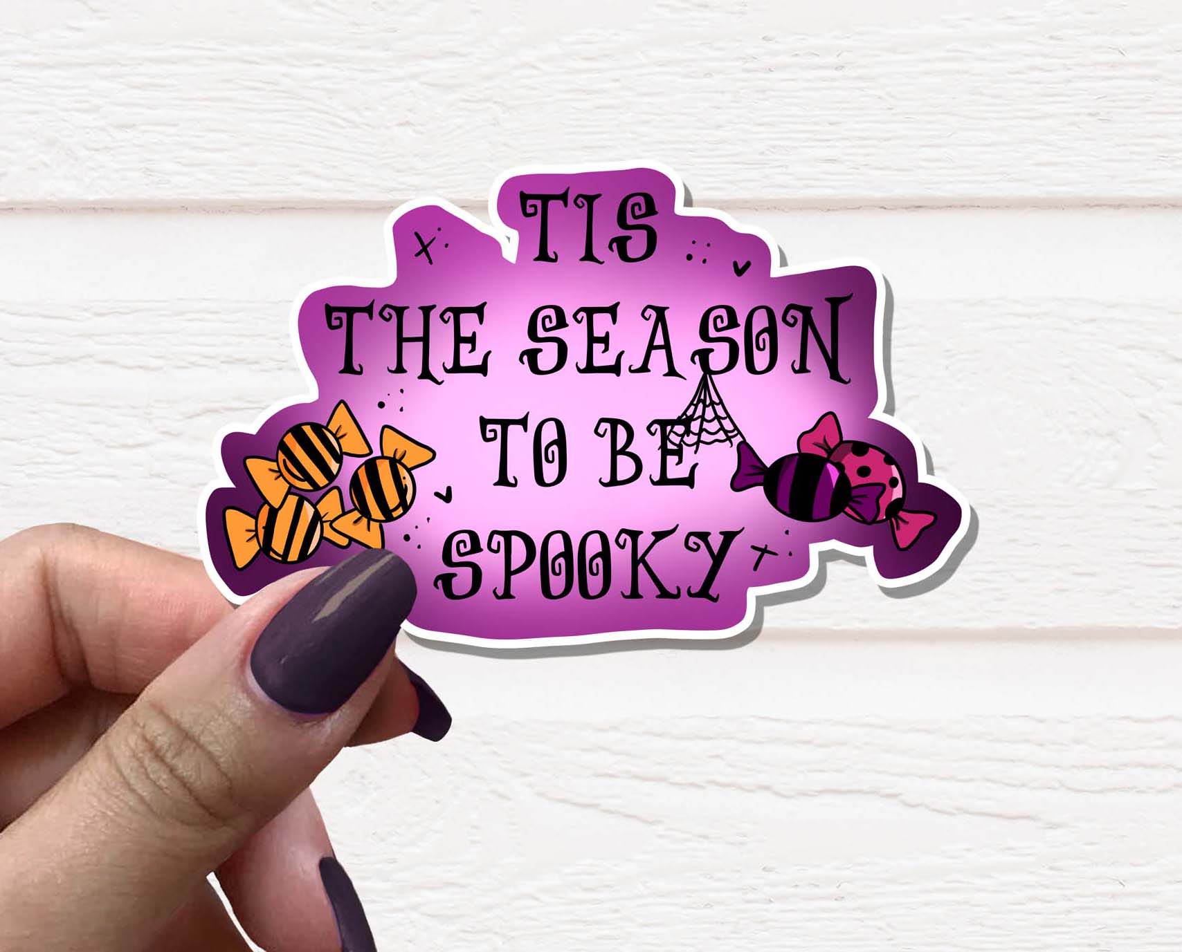 Embrace the Halloween spirit with our delightful Tis the Season to be Spooky Vinyl Sticker. Measuring 3.5 inches at its widest point, this sticker is designed to add a touch of festive fun to your belongings. Made from high-quality matte vinyl sticker paper, it not only looks great but also stands the test of time. Whether you're decorating your water bottle, planner, journal, skateboard, laptop, or notebook, this sticker is the perfect accessory to showcase your love for the spooky season.