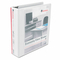 Create the perfect title page, then place it inside the see-through plastic overlay. Wide base rings lock in place to hold pages securely. Two inside pockets for additional storage of loose documents. Included card stock spines are easy to remove, reverse and re-use. Back mounted with exposed rivets on spine. Extra-deep 3 1/2" clear inside pockets. Maximum Capacity Range ("): 2 in; Sheet Capacity: 375; Color(s): White; Binder Sheet Size: 11 x 8 1/2.