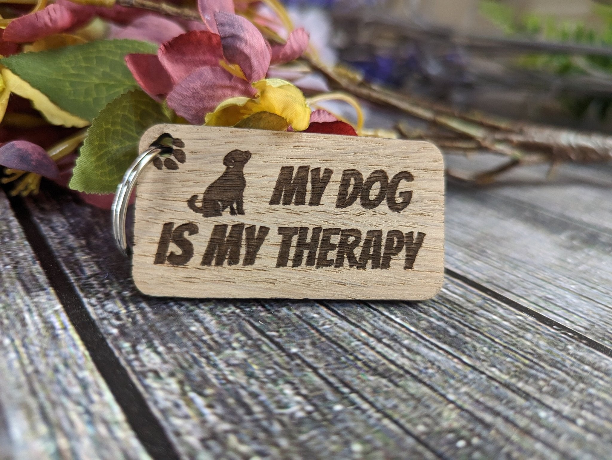 Eco-Friendly Wooden Keyring - "My Dog is My Therapy"