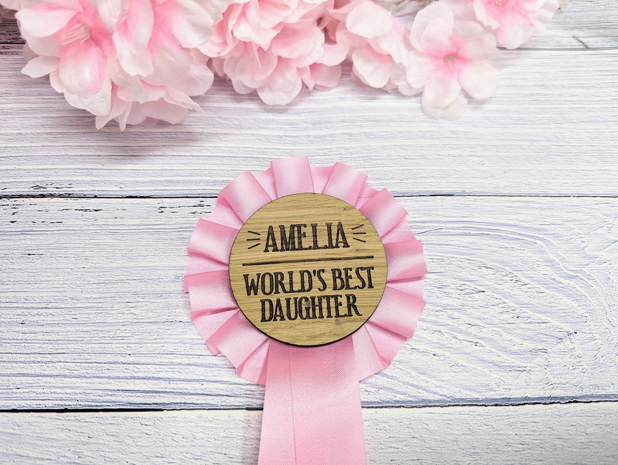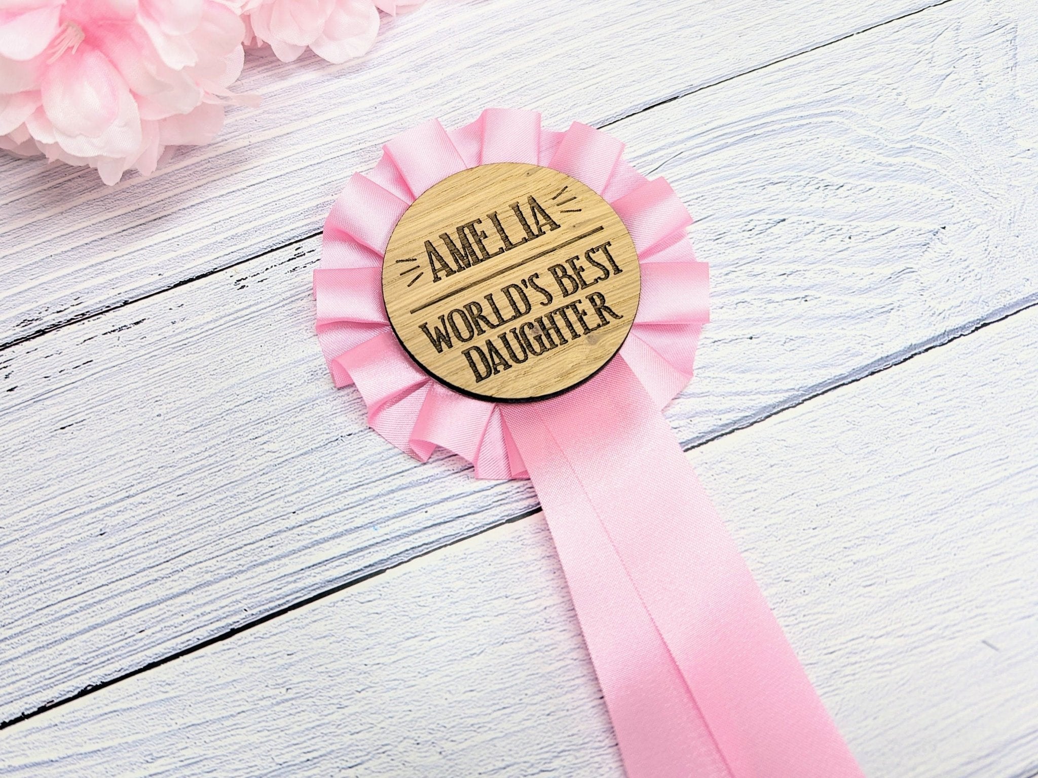 Choosing our "World's Best Daughter" rosette means choosing a gift that is not only beautiful but also meaningful. Personalisation adds a unique touch that shows your daughter just how special she is to you. This award is a wonderful way to celebrate her achievements and remind her of your love and support.