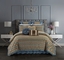 Give your bedroom a bold new look with the sophisticated style of the Sue comforter set from Chic Home. This stylish chenille comforter features a geometric scroll pattern with a faux silk flange border. A bed skirt, three unique decorative pillows, two design coordinated shams and two Euro shams complete the look. A four piece sheet set (1 fitted sheet, 1 flat sheet and 2 pillowcases) is included with every set.
