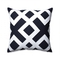 Enjoy rich geometric style with this sharp combination of nautical navy blue and clean snowy white. Thick lines of plushly soft white fleece cover the inky blue canvas-like basecloth of the throw pillow in an intricate, knot-like design. This striking design gives your space a feeling of traditional patterns turned into new styles, and coordinates beautifully with seaside themed furnishings, to pull together a room. This 16.5-inch throw pillow features a zipper making it easy to clean and 100% duck feather filled.