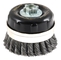 Ideal for heavy-duty cleaning of metal surfaces, used to remove rust, scale, paint or other adherence on flat or irregular surfaces, diameter: 4" Arbor: 5/8", RPM: 8,500.