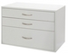 2 small 4" deep drawers and one medium 6" deep drawer.