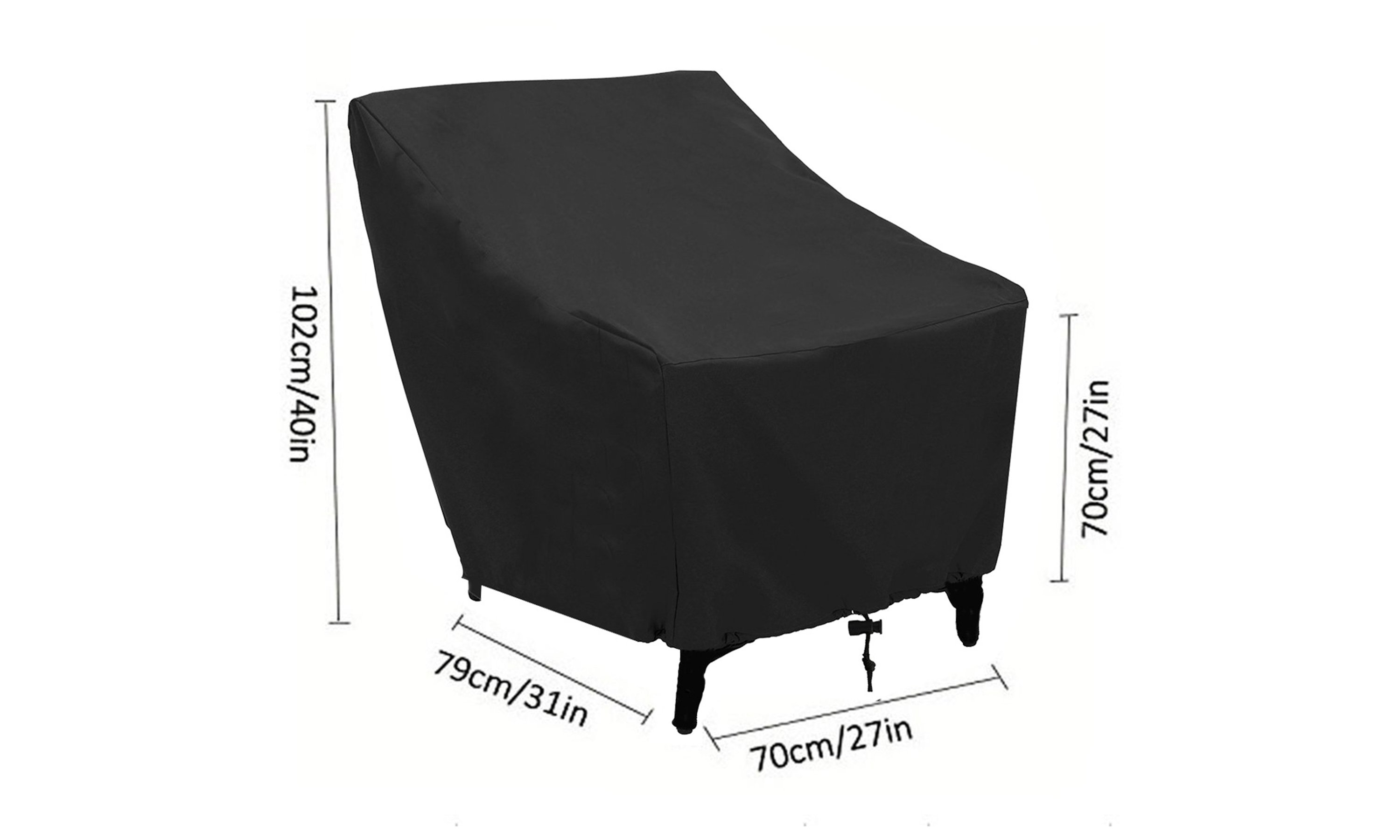 Measuring 70*79*102cm (28*31*40in), this universal cover is designed to fit a variety of outdoor chair styles and brands. Before purchasing, we recommend measuring your furniture to ensure a perfect fit. The cover is equipped with a locking rope at the bottom, allowing you to secure it firmly against wind, rain, snow, frost, hail, dust, and sunlight. This feature is particularly beneficial during stormy weather, as it prevents the cover from being blown away, keeping your furniture safe and protected.