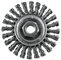 Recommended for removing dirt, rust, scale, paint, or welds from irregular surfaces High strength carbon steel wire provides long life Precision balanced wheel virtually eliminates vibration Fits all popular mini grinders Manufactured by advanced metering and flange crimping 20,000 maximum RPM 4" diameter Twist wire type, .63"-11 arbor Carded Length: 9.84Width: 5.63Height: 3.78