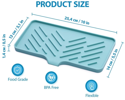 PREMIUM SILICONE MATERIAL: Our silicone sponge holder is made of durable and flexible silicone. After use, simply wash it with a warm soapy water. Or simply toss into the dishwasher! Each sink tray measures 9.45 x 5.12 Inches.